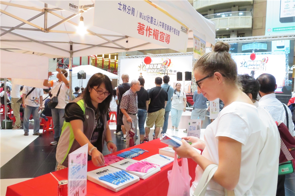 8月23日MÜST派員參與士林分局所舉辦之「104年犯罪預防日嘉年華園遊會」,並於現場設攤,發放著作權DM文宣品,宣導音樂著作權及MÜST所管理之三大權利,並邀請民眾參與掃描QR Code協會臉書粉絲團打卡按讚活動。