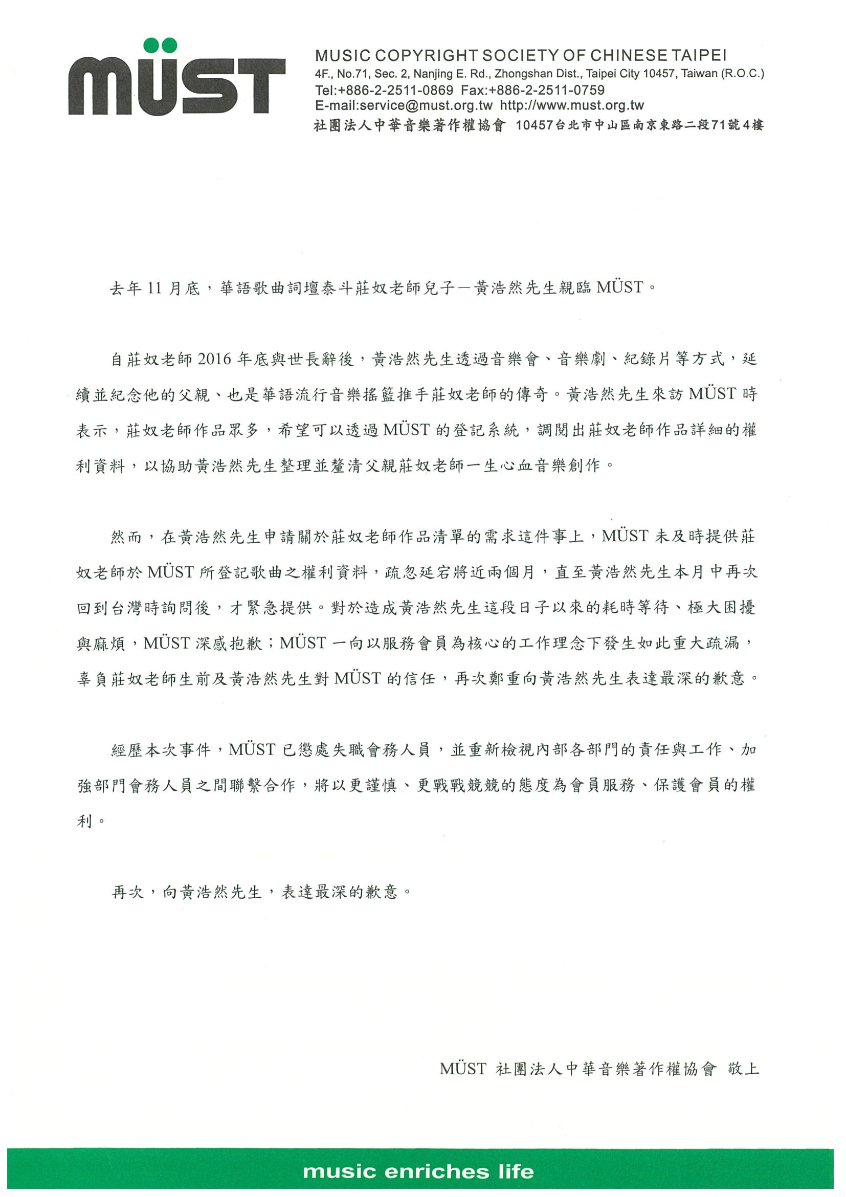 MÜST對黃浩然先生-道歉啟事。