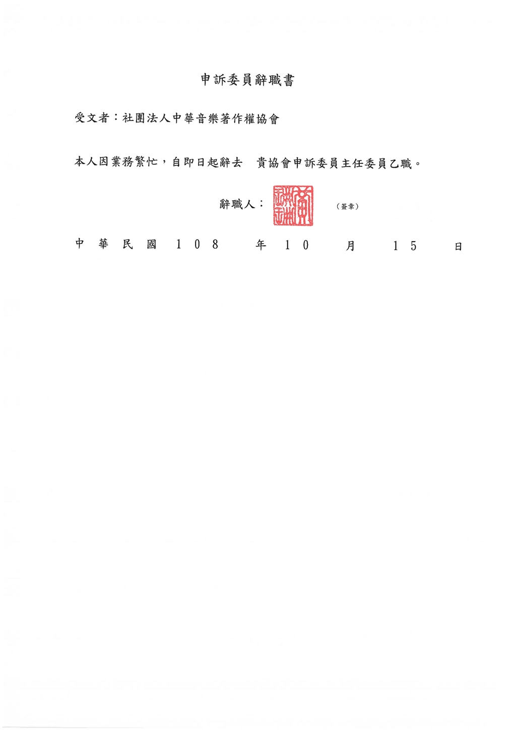 黃律師即將出任台北市副市長,於本會之申訴委員一職至108年10月15日止。